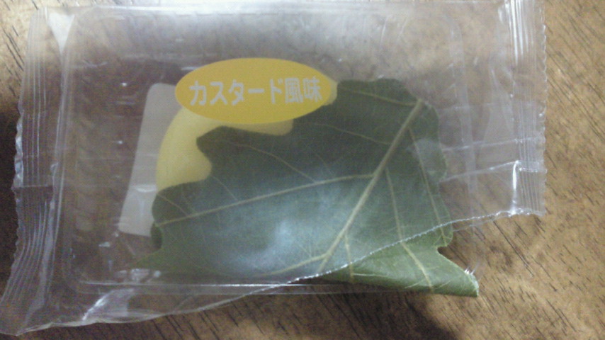 今日はカスタード風味を名乗る柏餅。